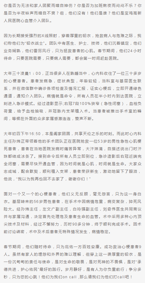 医务工作者的别样春节——之二